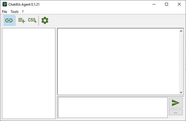 Launch chat4us-agent.jar and enable connection acceptance by clicking the Connect toggle button on your toolbar. This allows incoming connections from remote chat bot servers to join you in discussions. If you need to step away or are otherwise unavailable at a busy moment, simply click the Connect button again to let chat bot servers know that you’re not available.