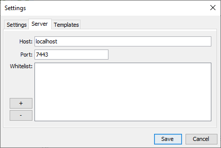 Click on the + button to open the Template Editor Dialog. There You can define the template title and Content. Remove the selected template by clicking on the โ button.