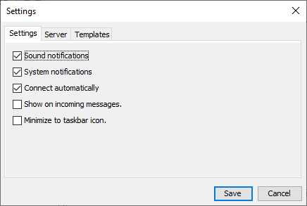 - Task bar icon: You can activate โMinimize to task bar iconโ and โShow on incoming messagesโ features on the Settings Dialog so the messenger window stays invisible until incoming messages.